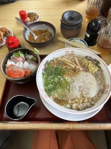 広島でライブの時に行った福山の万ぷく食堂。全部美味しいとのことなんだけど、人気の海鮮丼とラーメンのセットを。まず海鮮丼、どのお魚も新鮮で甘めの醤油との相性抜群で美味しかった!!そして数年振りに食べたラーメンもあっさりめの醤油ベースで美味しかった!めちゃくちゃボリュームありすぎて2食分くらいあったけど、全部胃袋の中へ放り込んだ。今年一おなかパンパンに。おでんとかも美味しそうだったなぁ、、ボリュームがすごいのにこんなに安くていいの?!ってくらいコスパが最強のお店。また必ず行きたいっ!