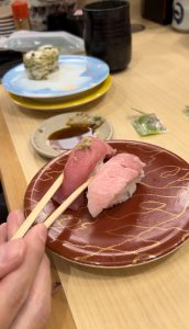そしてお次は石川県羽昨市で行った回転寿司屋さんの”まぐろや”さん。実はここ美味しすぎてみんなで二日連続行ってしまった。こんなことはじめて笑 全部美味しいんだけど特にブリが最強!!!あんなにとろけるブリは初めて。武井さんはブリ5カンくらい食べてたかな?二日連続でブリばっかり食べてた。わたしはブリ、まぐろ、サーモンサラダ、蒸しえび、うに、ホッキ貝、などを食べて最後にはコーヒーゼリーも食べて幸せの極みだった。どれも美味しくて二日目も10皿くらい食べてしまった。なんてこった。まぐろやさん、また必ず来たい!家の近くにほしい・・