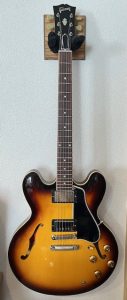 さて今回は最近手に入れたマイニューギアを紹介するよオーライ。これはGibson c/sのes-335というギターなんだけど、オレギブソンなんて何十年も買ってなかったからさ。超久々のギブソンなのよね。しかも箱物のギブソン様だなんて触るのも初めてよ。もっぱらのフェンダーっ子だからねオレは。ハムバッカーでどうやって良い音作るのかイマイチわかんないんだけど、このギターはすごくオールマイティーな音がするね。ジャンルを選ばず使える感じがするよ。もしかしたら次のツアーから導入? するかもね。とあるご縁でオレの元にやってきたこのギター。本当にありがとうございます。一生大切にしよう。そしてこのギターに相応しいプレイヤーになるんだ。オレの秋の夜長を癒すのは結局ギターなんだわ。