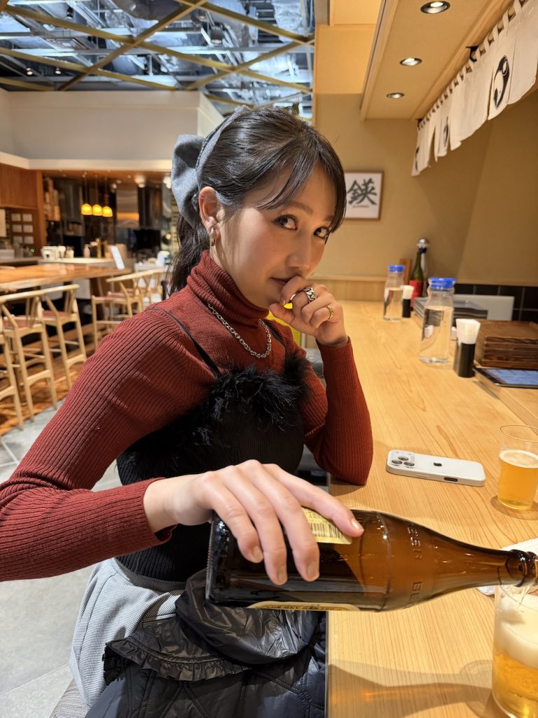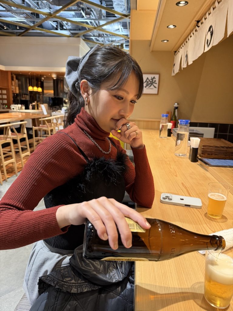 写真は二重顎でビールを注ぐ井上です。