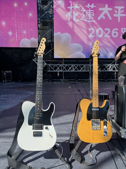 さて今回は年末に台湾のフェスに出演した際のギターを紹介するよオーライ。茶色い方はオレのテレキャスターで、fender japanのサブのやつだね。海外公演は壊れたりするリスクがあるから怖くてメインは持って行けないのよ。でもこれフレットを打ち替えたり指板修正したりしてるからめちゃくちゃ弾きやすいし、ピックアップもUSAカスタムショップのハンドワイヤードの物が乗ってるから音もバッチリだよ。コレがメインでも良いくらいだね。白いのは台湾の友人に借りたスリップノットのモデルだね。作りからパーツから全てがfenderらしくはないんだけどコレも弾きやすくてすごく良いギターだったね。コレでライブやっても良かったなってくらい。ちょっと欲しいな。日本から配信見てくれたみんな、ありがとう〜。